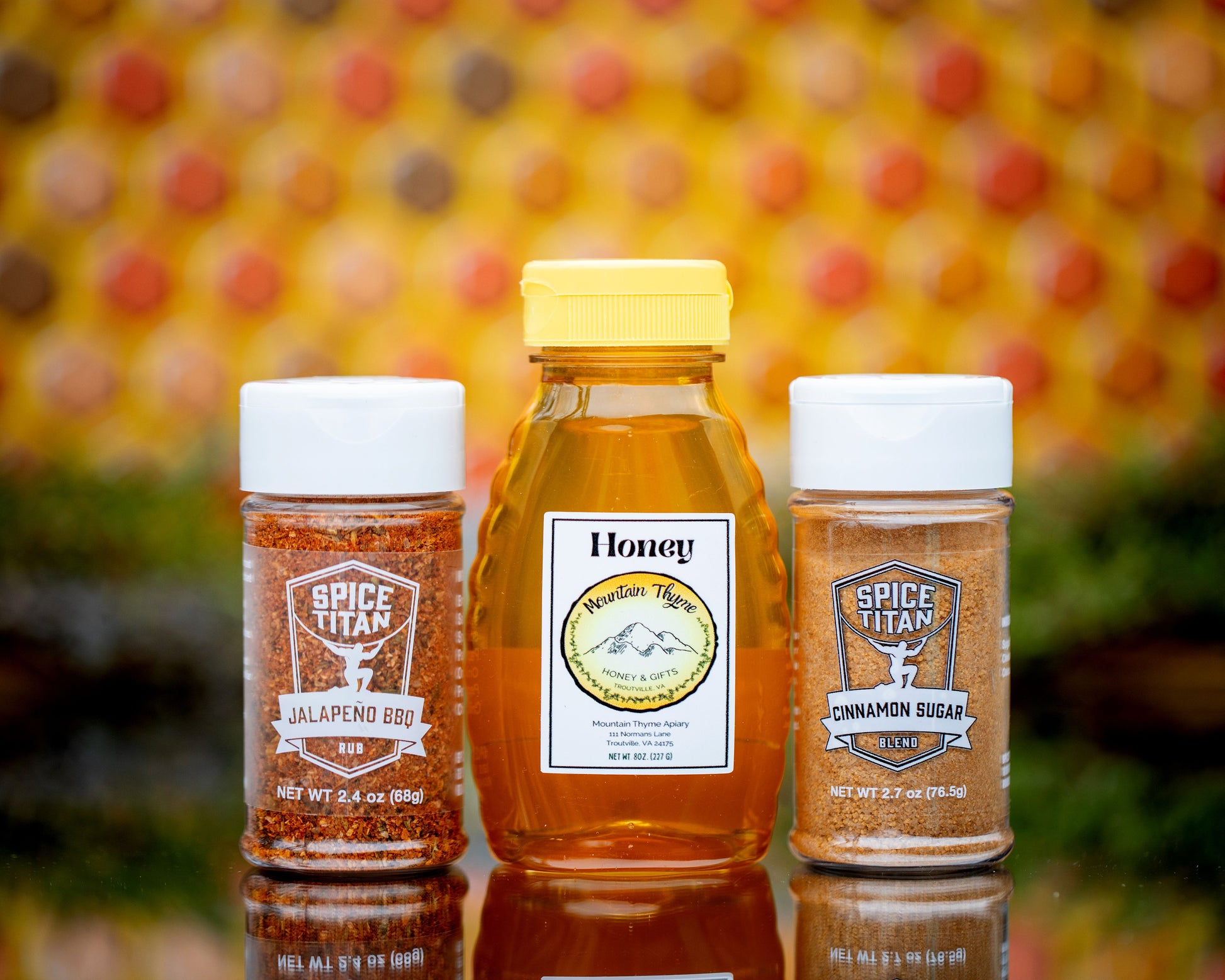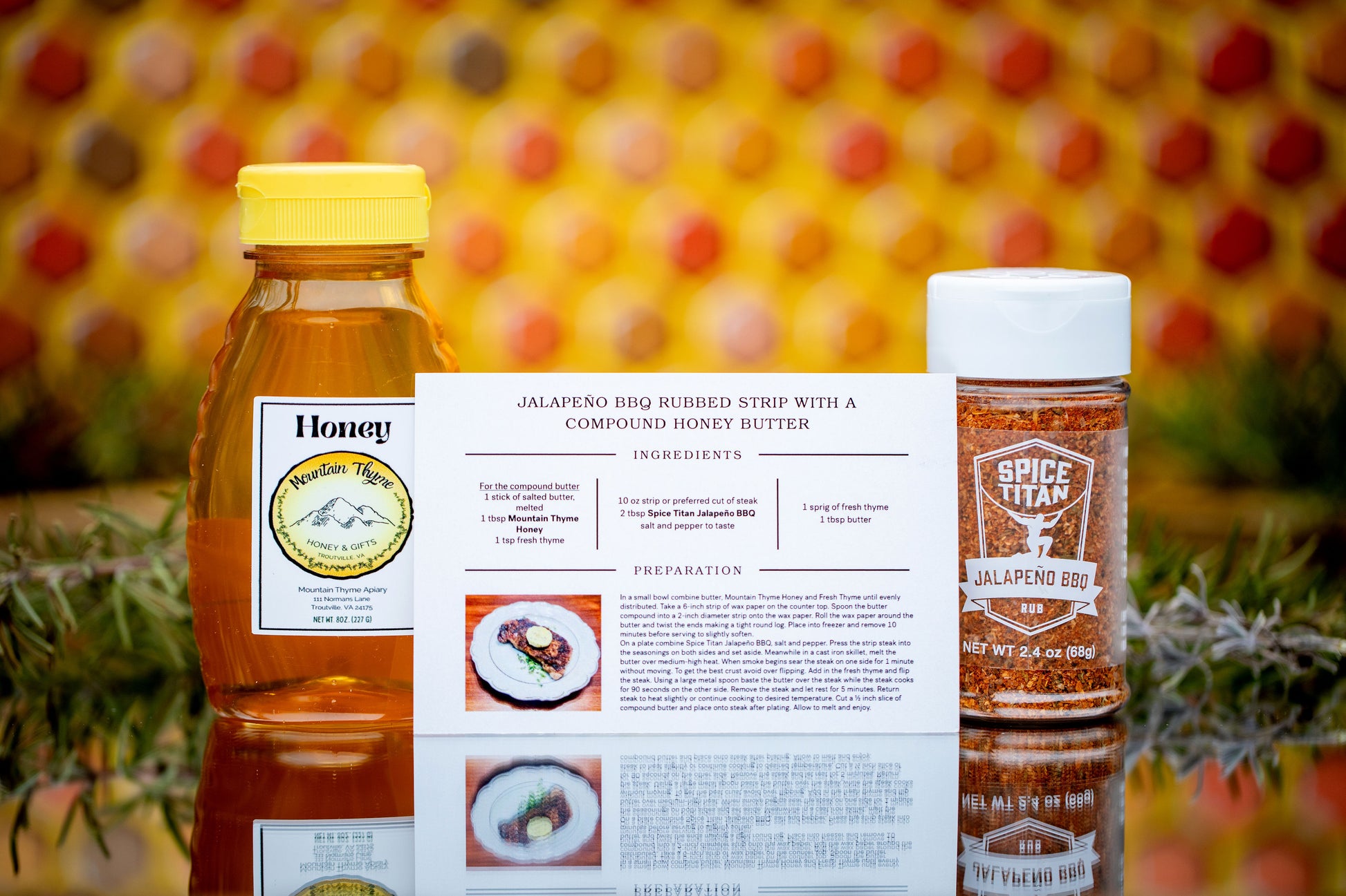 Elevate your culinary experience with this Spice Titan and Mountain Thyme Honey Culinary Gift Set! The beautifully curated package combines the finest artisanal honey from Mountain Thyme Honey with two of our exquisite spice blends, creating a delightful fusion of flavors that will inspire your cooking.